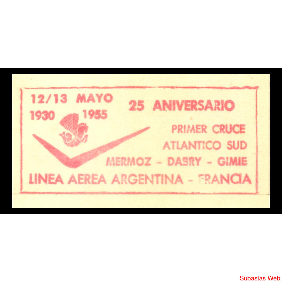 ARGENTINA - FRANCIA 1955- ESPECTACULAR TARJETA POSTAL DEL 25 ANIVERSARIO DEL PRIMER CRUCE DEL ATLÁNTICO SUD POR EL MÍTICO AVIADOR ***JUAN MERMOZ*** .