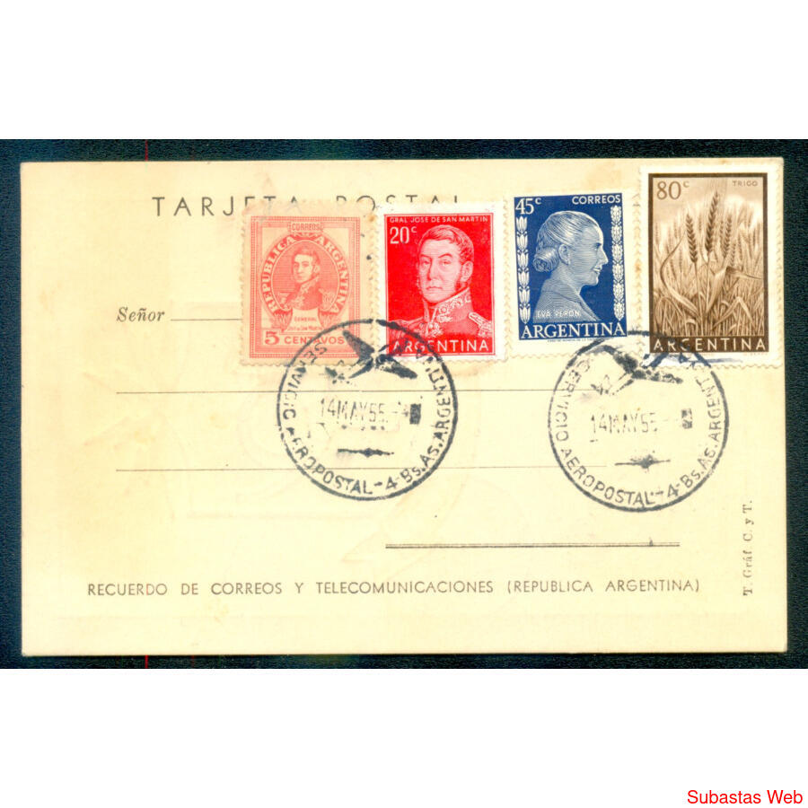 1955 ESPECTACULAR TARJETA CIRCULADA HOMENAJE A JUAN MERMOZ