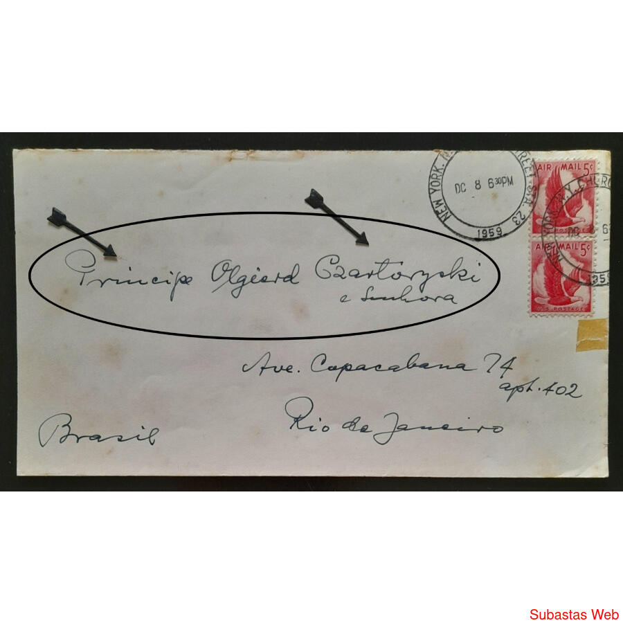 PORTUGAL 1953 + ESTADOS UNIDOS 1959. - 2 VIEJOS SOBRES A RIO DE JANEIRO - BRASIL DIRIGIDOS AL ***PRÍNCIPE OLGIERD CZARTORYSKI*** y A SU ESPOSA LA PRINCESA