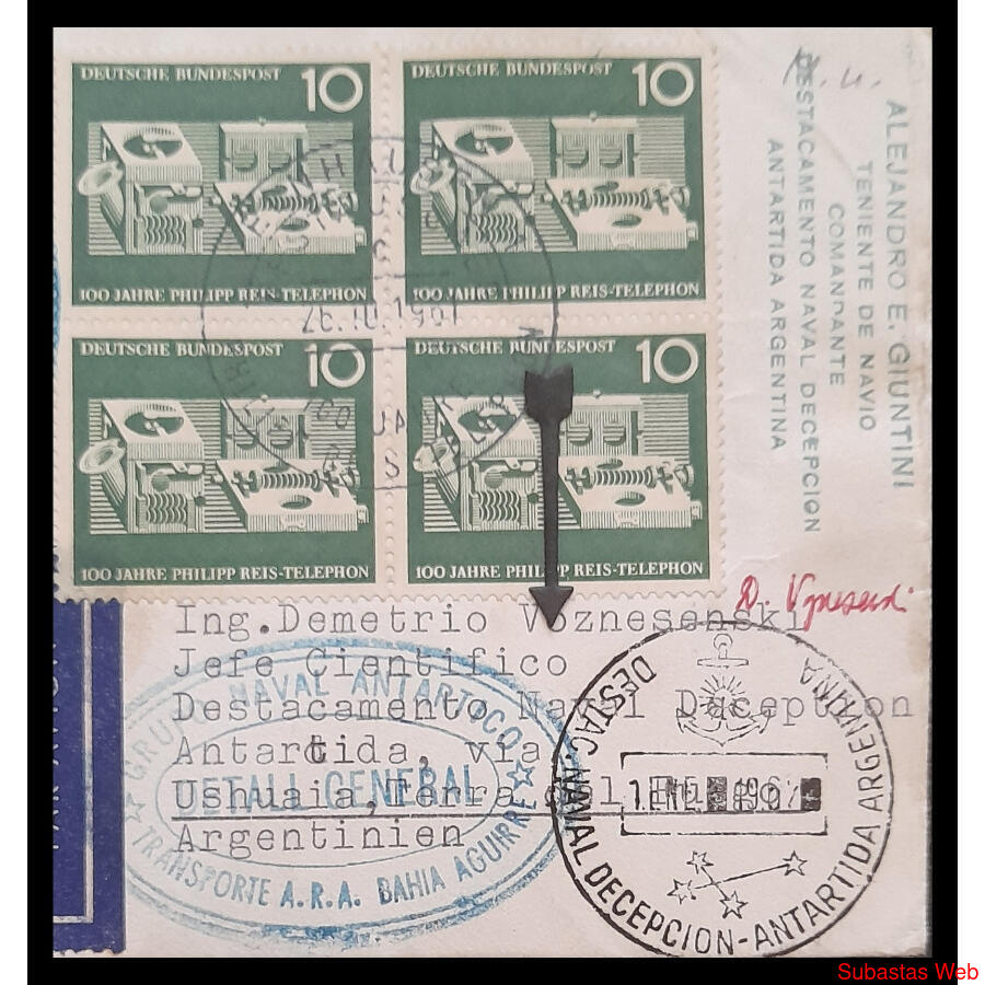 ALEMANIA FEDERAL. AÑO 1967. ESPECTACULAR SOBRE CIRCULADO AL ***DESTACAMENTO NAVAL DECEPCIÓN - ANTÁRTIDA ARGENTINA DIRIGIDO AL INGENIERO DEMETRIO VOZNESENSKI - JEFE CIENTÍFICO DEL DESTACAMENTO*** - REALMENTE ÚNICO !!!