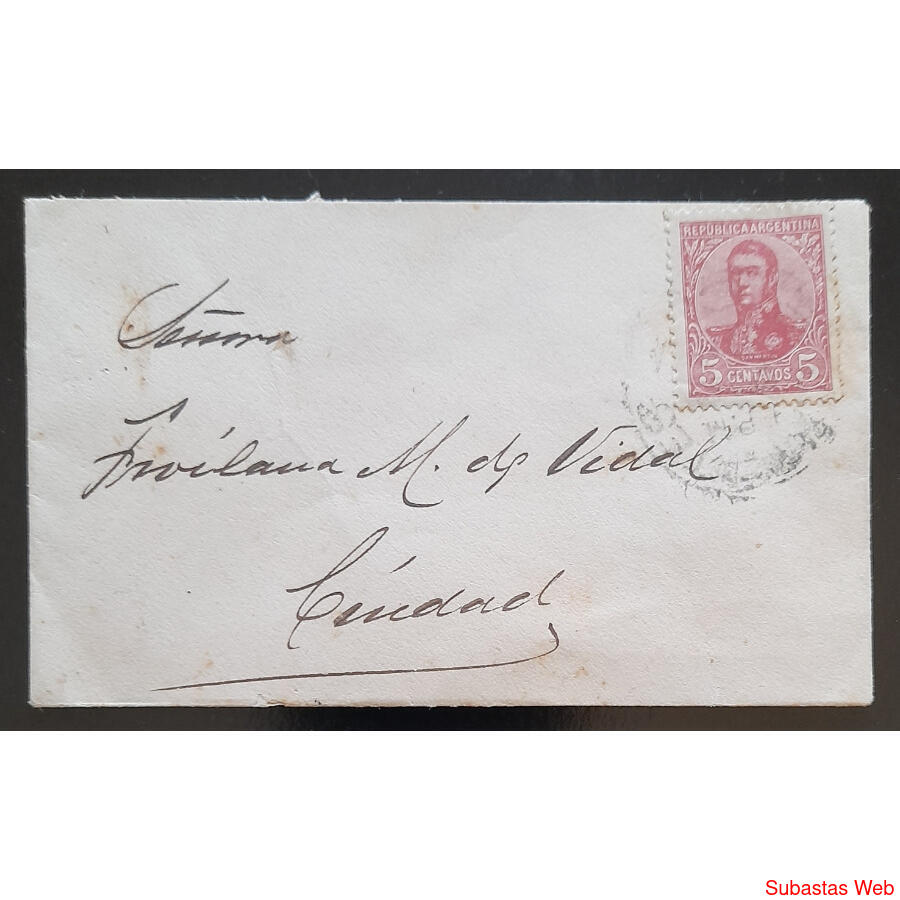 ARGENTINA. AÑO 1909 - SOBRE ENVIADO POR EL*** GOBERNADOR DE CORRIENTES AL DIPUTADO NACIONAL JUAN J. LUBARY*** EN BUENOS AIRES CON UN GJ280 SIN MATASELLAR.