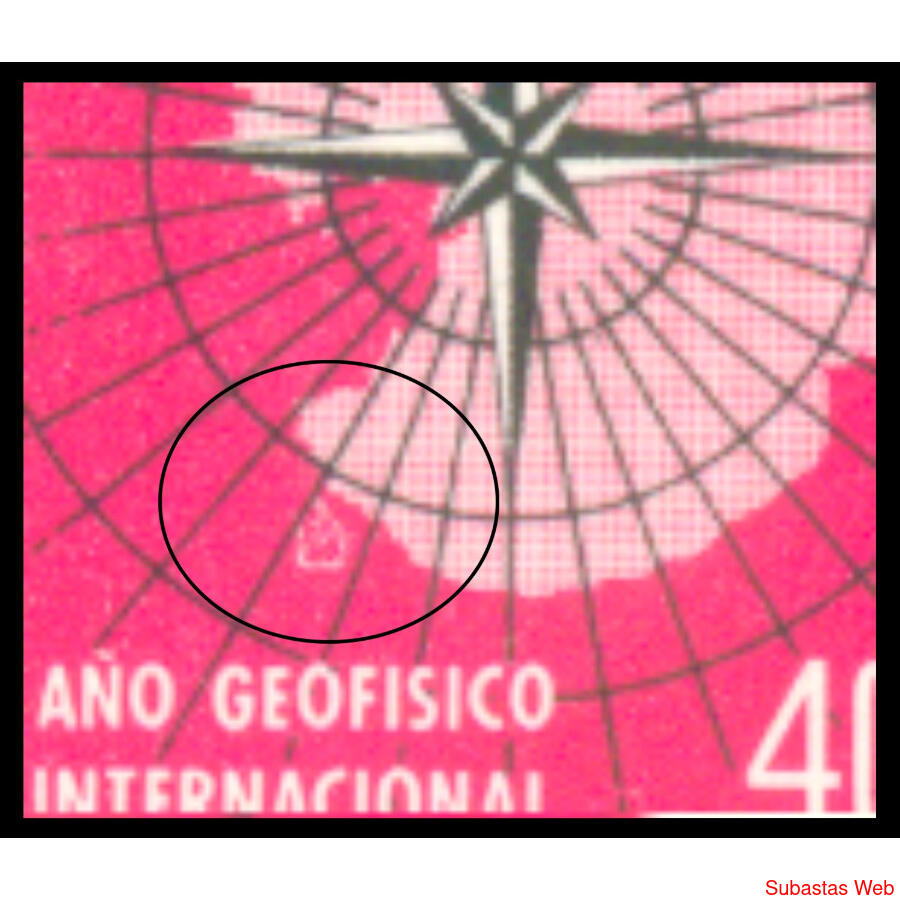 ARGENTINA. GJ1108 ***AÑO GEOFÍSICO INTERNACIONAL*** . CUADRITO EN FRAGMENTO CON MATASELLO DE LA EXPOSICIÓN con