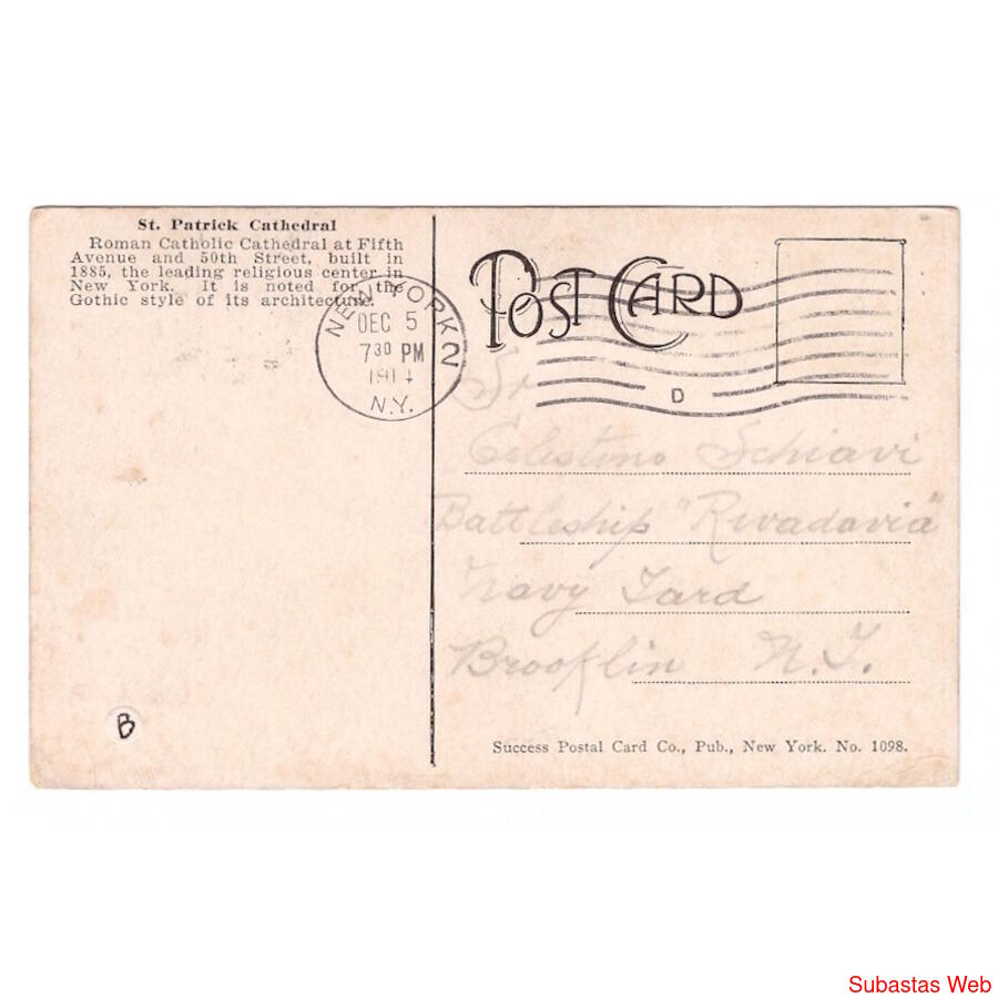 TAMAÑO: 89 X 141 MILIMETROS - ORIGEN: ESTADOS UNIDOS - EDICION: SUCCESS POSTAL CARD COMPANY (New York) - Nro. 1098 - SELLO DE ESTADOS UNIDOS