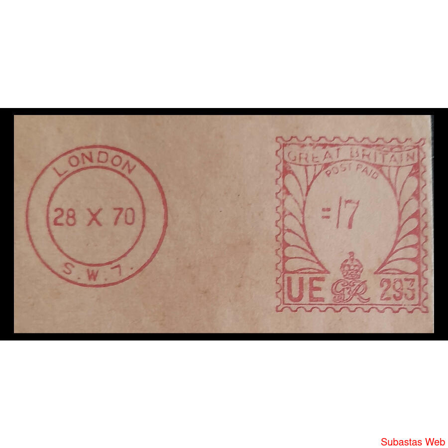 INGLATERRA. 1970 ANTIGUO y HERMOSO SOBRE CON CANCELACIÓN MÉTRICA DE 17 POUNDS CON ESTAMPILLA IMPRESA DE PERMISO POSTAL EN ESTE CASO DEL ****BANK P.K.O. HASKOBA LTD.****