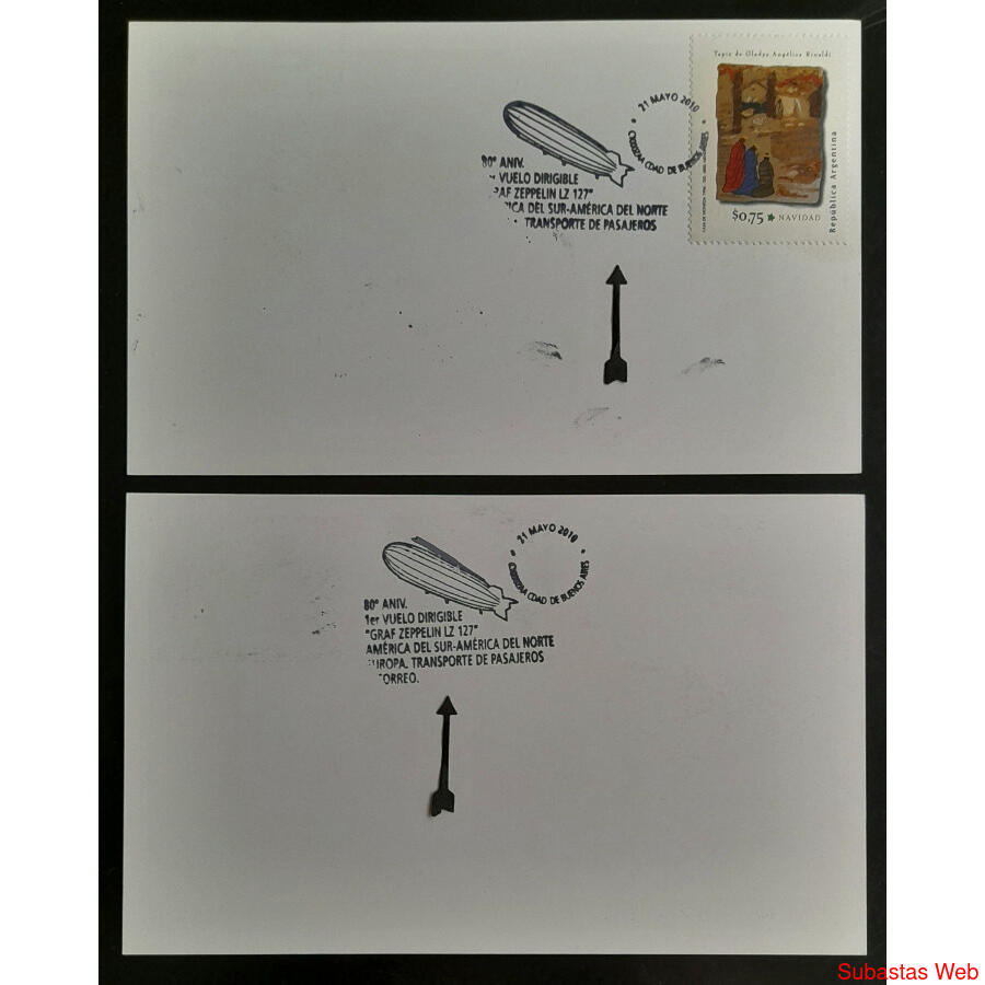 ARGENTINA. 2010. DOS (2) ESPECTACULARES TARJETAS FILATELICAS CONMEMORANDO LOS ****EL 80° ANIVERSARIO DEL PRIMER VUELO DEL DIRIGIBLE ""GRAF ZEPPELIN"" DESDE SUDAMÉRICA****