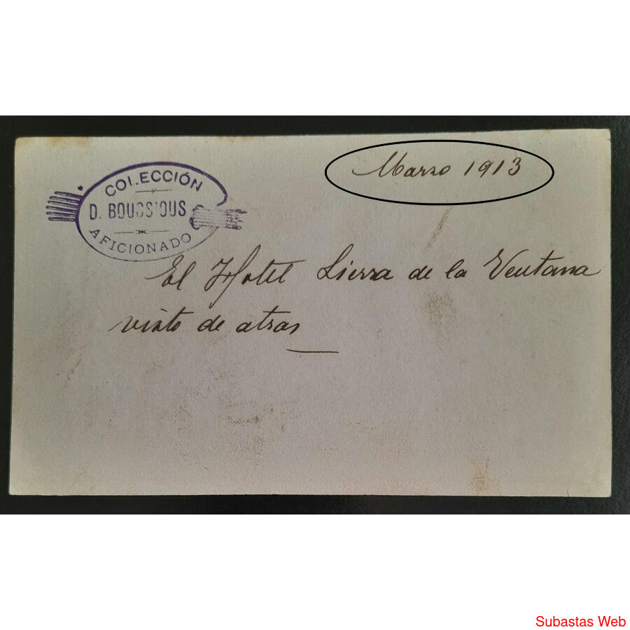 UN HERMOSO TESTIMONIO SIN CIRCULAR Y FUE SACADA y PERTENECIÓ A UN COLECCIONISTA PRIVADO ***D. BOUSSIOUS*** y NUNCA VIO LA LUZ COMO EDICION POSTAL COMERCIAL MANTENIÉNDOSE EN SU COLECCIÓN HASTA QUE SUS DEUDOS DECIDIERON VENDERLA.