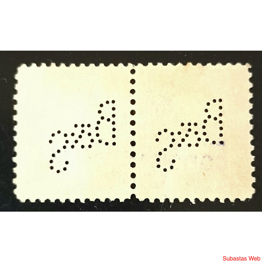 ESTADOS UNIDOS DE AMÉRICA. Scott 554. GEORGE WASHINGTON. RARA PAREJA HORIZONTAL CON PERFORACIÓN COMERCIAL (VER LA SEGUNDA IMAGEN) CON UNA CURIOSA y MUY EXTRAÑA MARCA DE GOMIGRAFO EN TINTA AZUL QUE DICE: