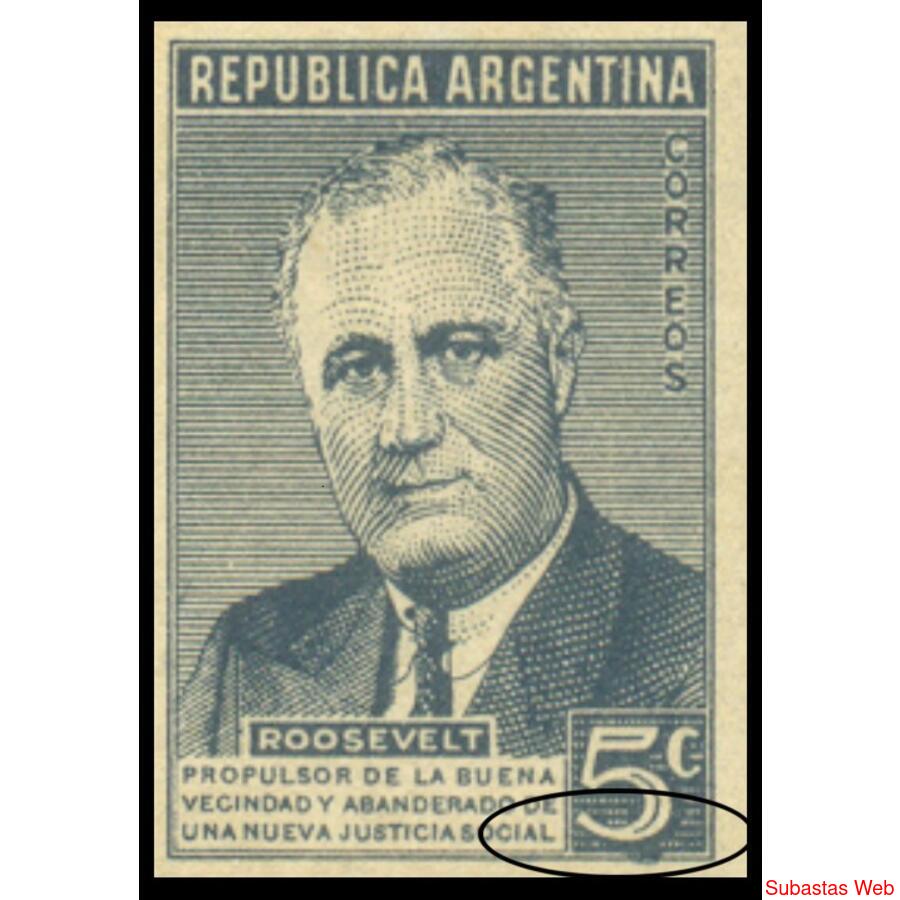 ARGENTINA. GJ 927 ***PRESIDENTE FRANKLIN DELANO ROOSEVELT*** ESPLENDIDO CUADRO MINT CON NOTABLE VARIEDAD DE IMPRESIÓN: