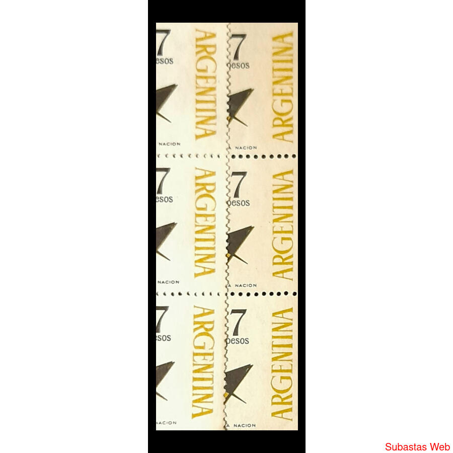 GJ1252. EMISIÓN PARA CORREO AÉREO - ****AVIÓN ESTILIZADO de 7 Pesos OCRE y NEGRO CON ***** ARGENTINA HACIA ARRIBA ***** EN HERMOSA TIRA VERTICAL x3 EJEMPLARES NUEVOS R/B DE GRAN CALIDAD