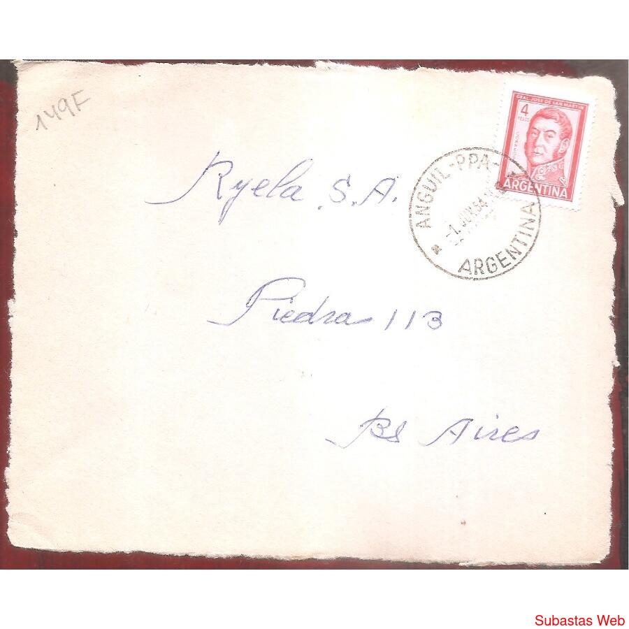 FRENTE DE SOBRE CIRCULADO EL 1 DE JUNIO DE 1964 DE ANGUIL LA PAMPA - A BUENOS AIRES CAPITAL- , FRANQUEO: SAN MARTIN DE $4 PROCERES Y RIQUEZAS . MATASELLO DE ANGUIL, NO HAY DORSO