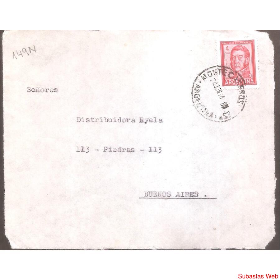 ARGENTINA 1964 SOBRE CIRCULADO NUMERO 149N