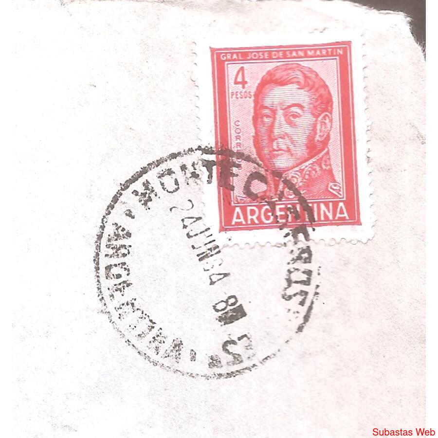 FRENTE DE SOBRE CIRCULADO EL 24 DE JUNIO DE 1964 DE MONTE CASERO, CORRIENTES - A BUENOS AIRES CAPITAL- , FRANQUEO: SAN MARTIN DE $4 PROCERES Y RIQUEZAS . MATASELLO DE MONTR CASEROS, NO HAY DORSO