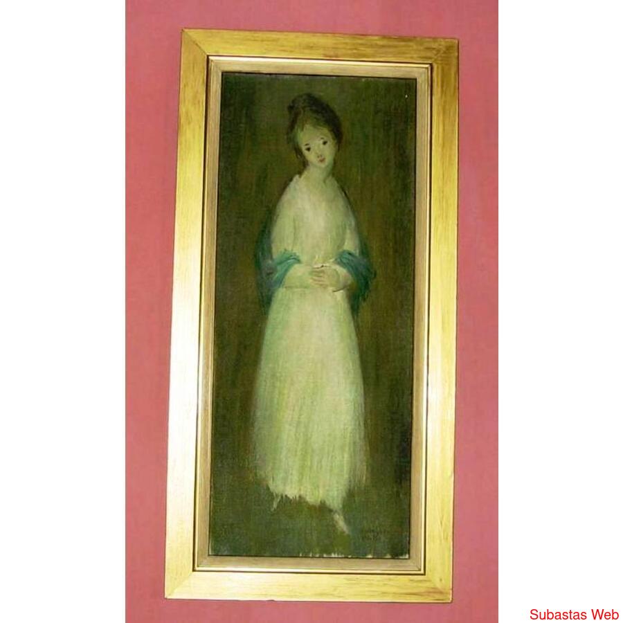 FIGURA FEMENINA , Oleo sobre carton entelado firmado RODRIGUEZ PORTAL, marco con cascaruditas.-gdt (asi tengo el comprobante del banco que me lo dio en 1973).-