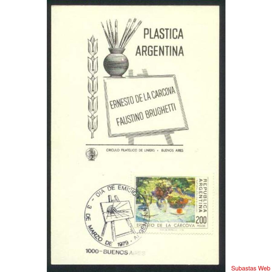 ARGENTINA 1979: 2 TARJETAS PDE PINTURA ARGENTINA: DE LA CARCOVA Y BRUGHETTI : TARJETAS DEL CIRCULO FILATELICO DE LINIERS