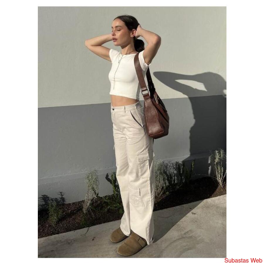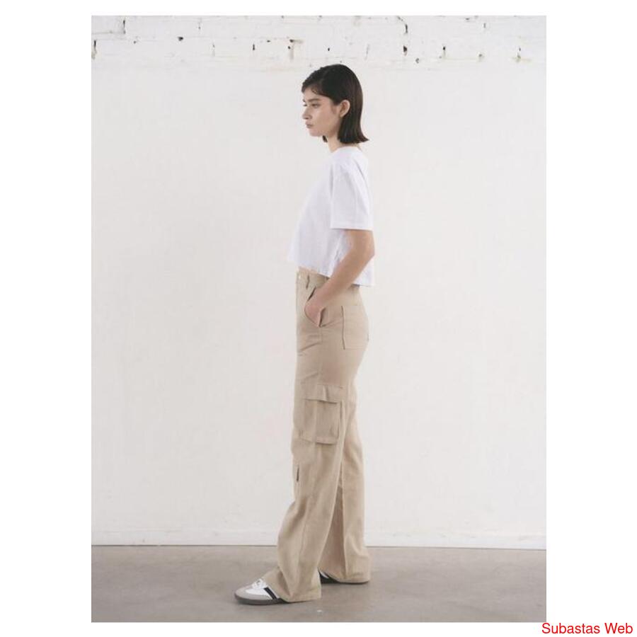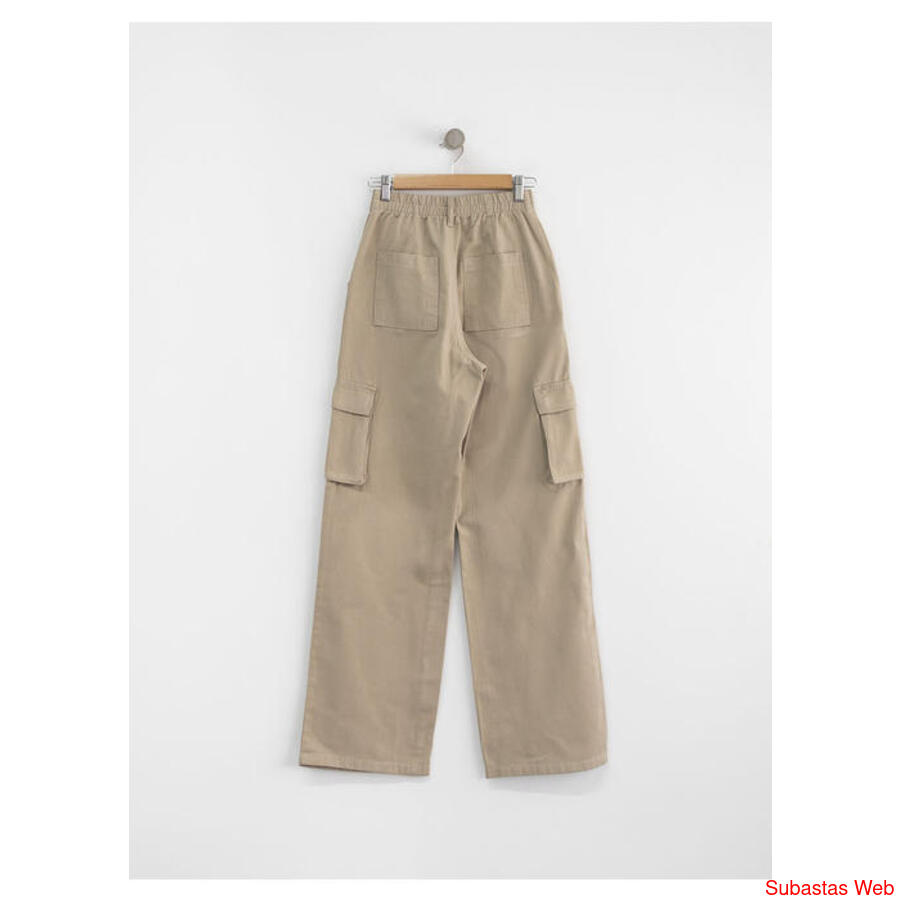 Pantalón wide leg estilo cargo con elástico en la espalda para un mayor calce. Tiene bolsillos jeaneros en el delantero, estilo cargo en los costados delanteros y uno adicional pequeño. Tela: gabardina rígida + proceso previo de lavado y planchado.