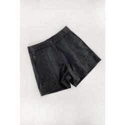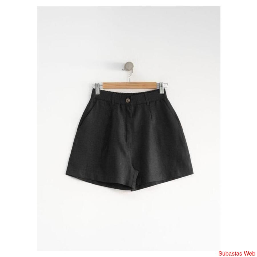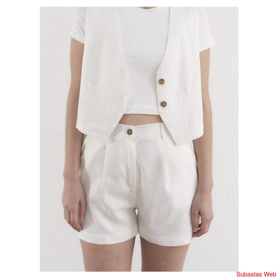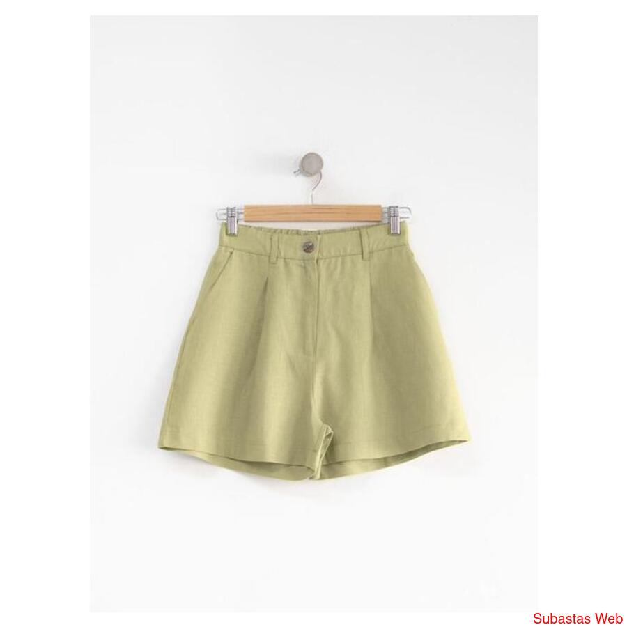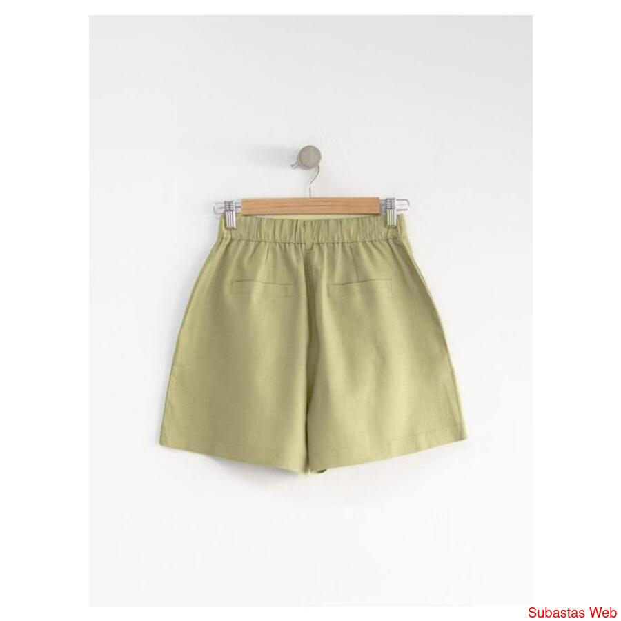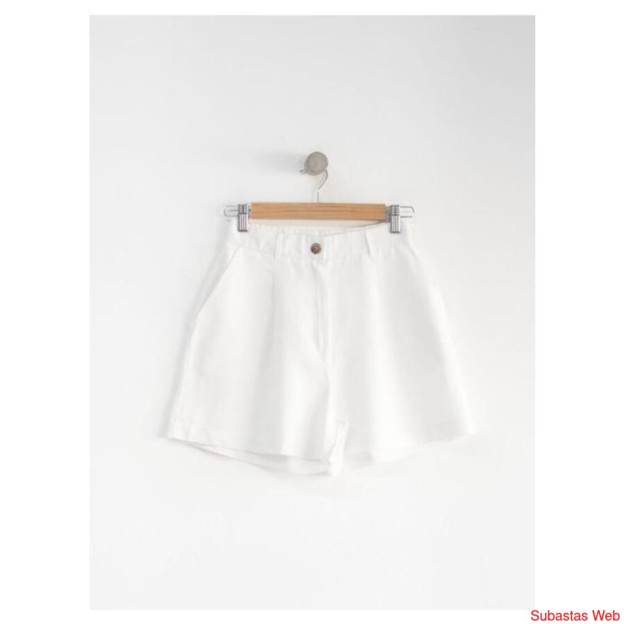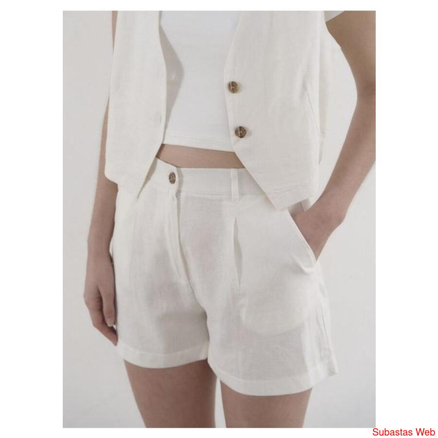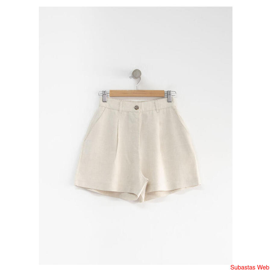 Short con pinzas delanteras, bolsillo delantero, cintura en la espalda con bolsillos ojales falsos. Tela: lino.
