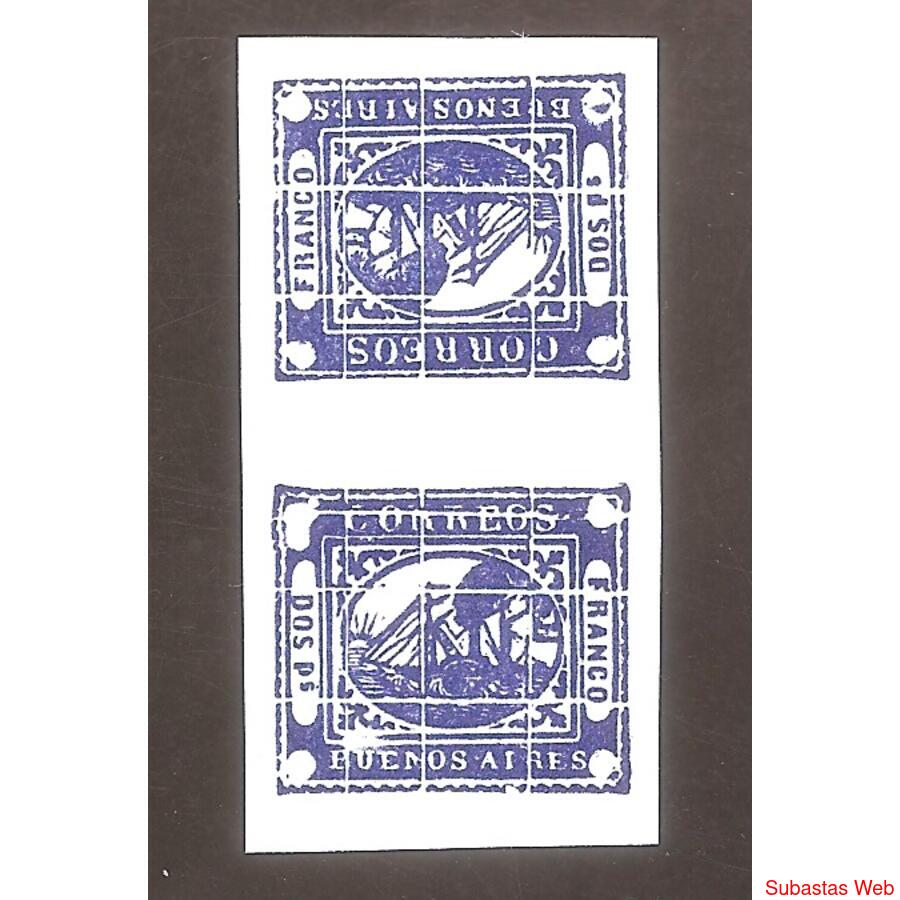 ARGENTINA 1858 BARQUITO DOS Ps. EN TETE-BECHE REIMPRESION DE PALEY EN COLOR AZUL