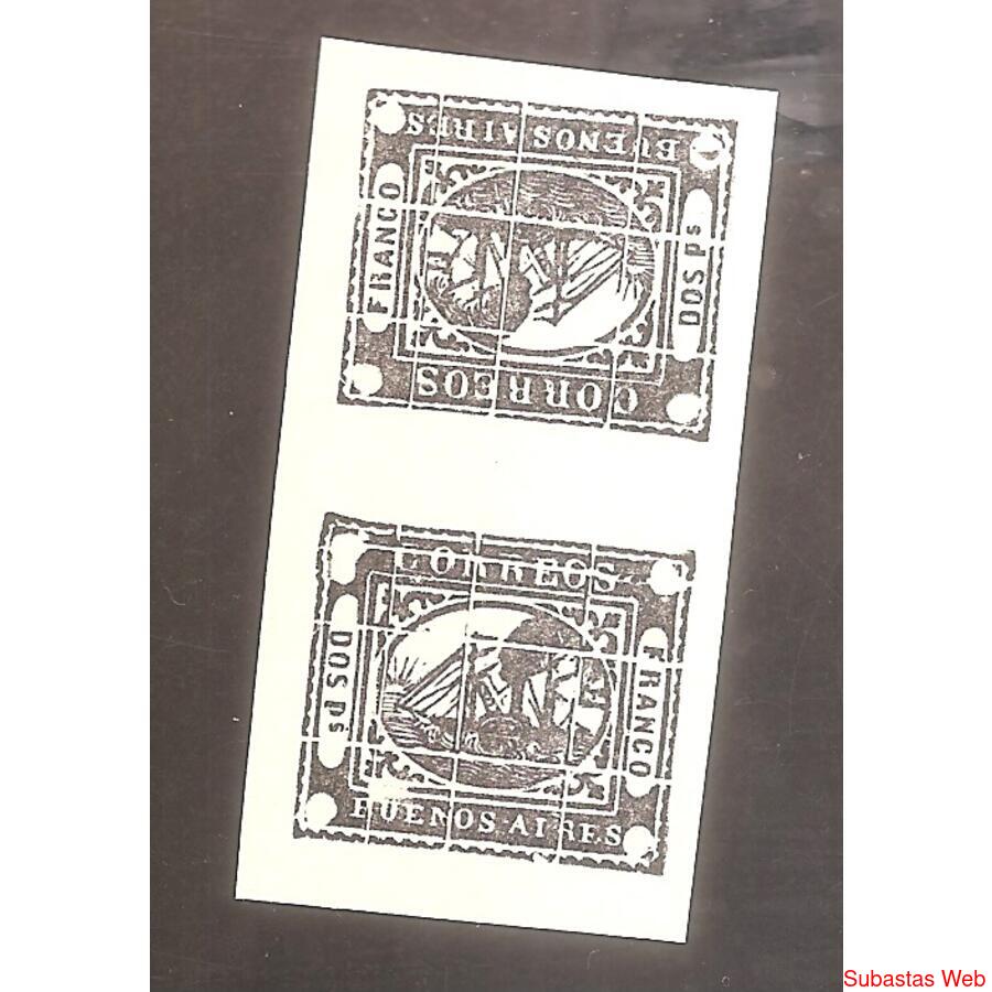 ARGENTINA 1858 BARQUITO DOS Ps, TETE-BECHE, REIMPRESION MAR