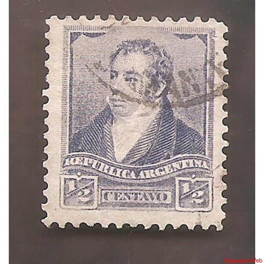 ARGENTINA 1892 TRES PROCERES: RIVADAVIA: FILIGRANA SOL CHICO, DENTADO 11,5x11,5 USADA, NROCAT: MT:94 GJ137