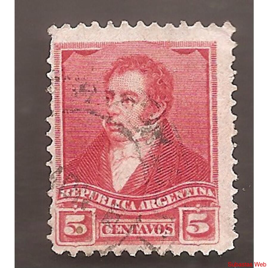 ARGENTINA 1892 TRES PROCERES: RIVADAVIA: FILIGRANA SOL CHICO, DENTADO 12,25x12,25 USADA, NROCAT: MT:98A GJ:156