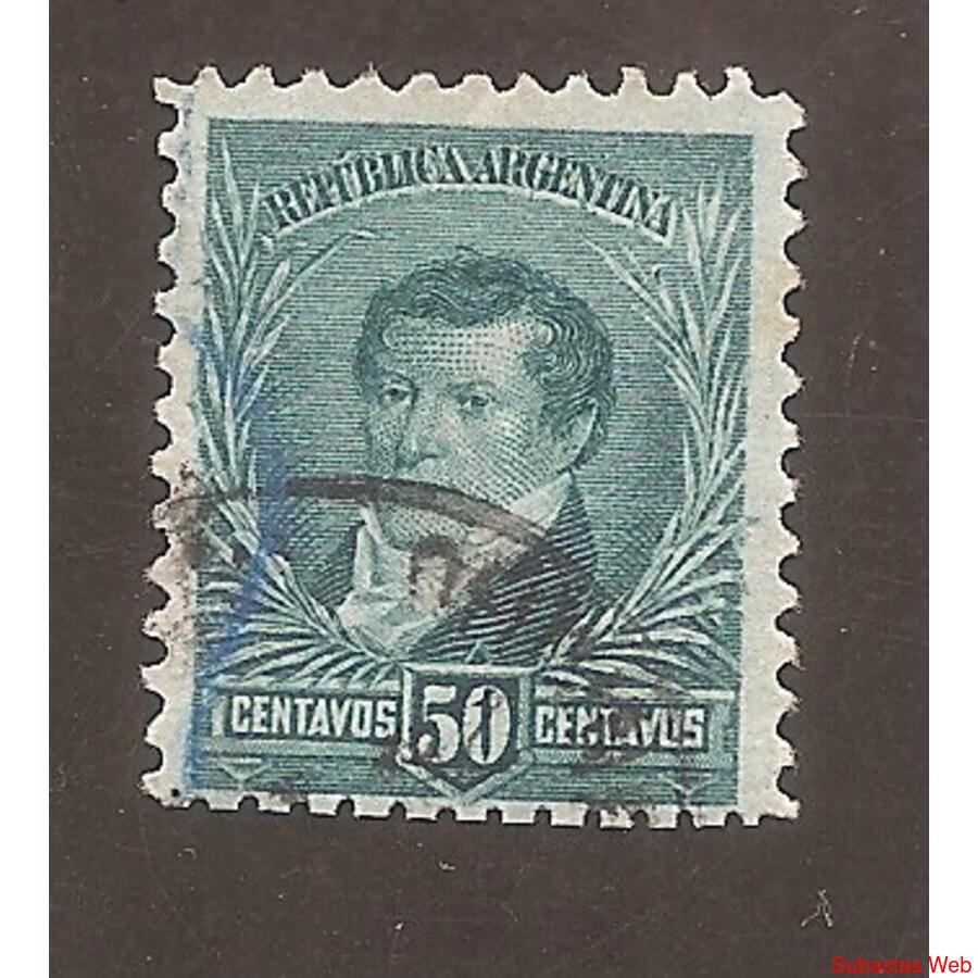 ARGENTINA 1892 TRES PROCERES, BELGRANO: FILIGRANA SOL CHICO, DENTADO 11,5x11,5 USADA, NROCAT: MT:104 GJ147