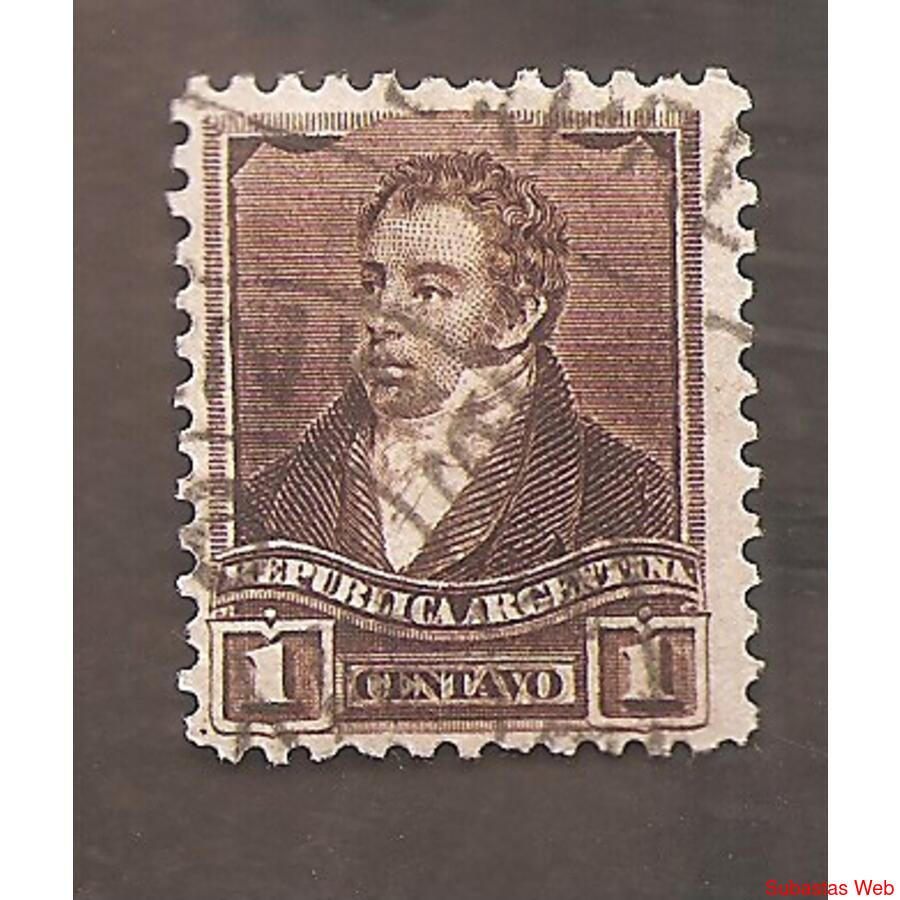 ARGENTINA 1892 TRES PROCERES: RIVADAVIA: FILIGRANA SOL GRANDE DENTADO 11,5x11,5 USADA, NROCAT: MT:95I GJ:175