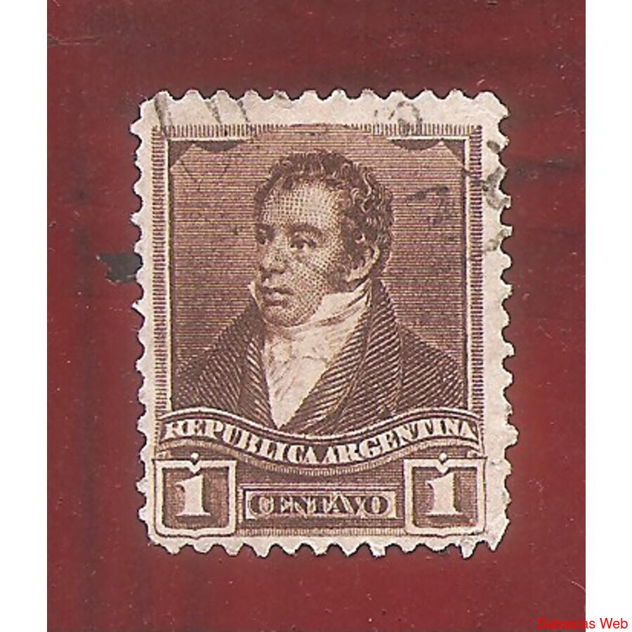 ARGENTINA 1892 TRES PROCERES: RIVADAVIA: FILIGRANA SOL GRANDE, DENTADO 12,25x12,25 USADA, NROCAT: MT:95IA GJ:191