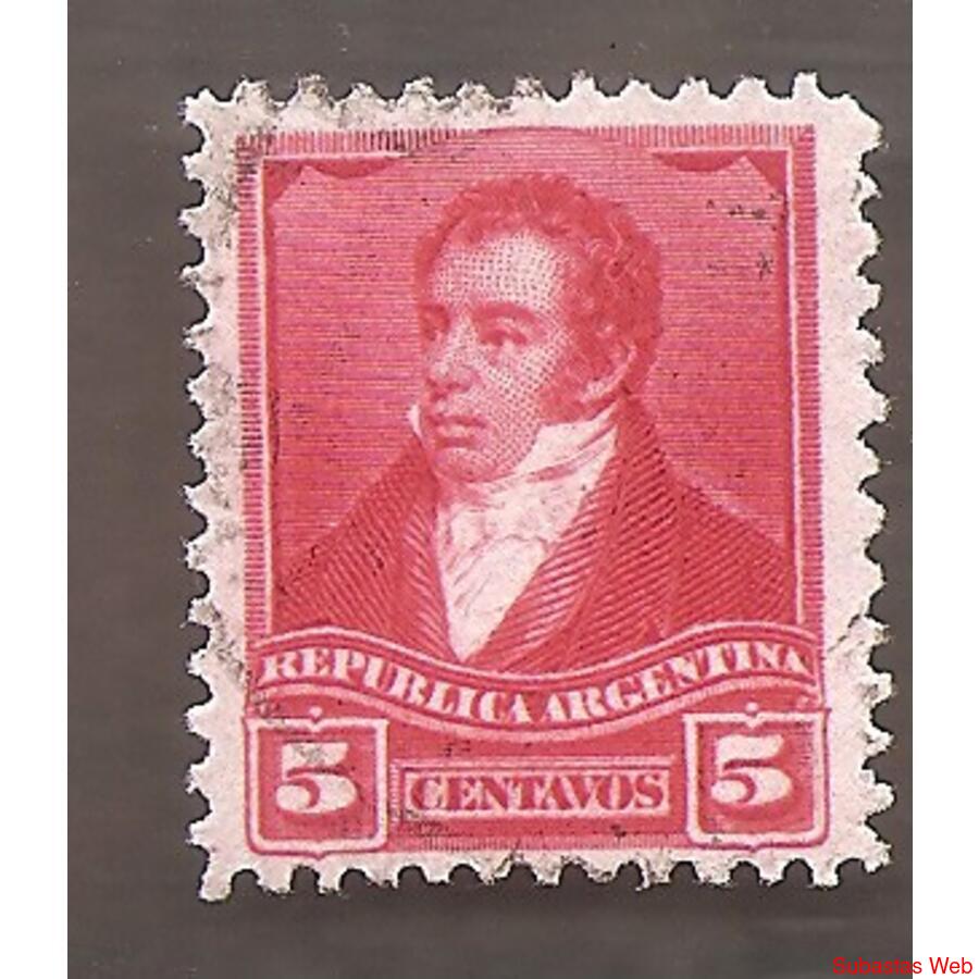 ARGENTINA 1892 TRES PROCERES: RIVADAVIA: FILIGRANA SOL GRANDE, DENTADO 11,5x11,5 USADA, NROCAT: MT:98I GJ:172