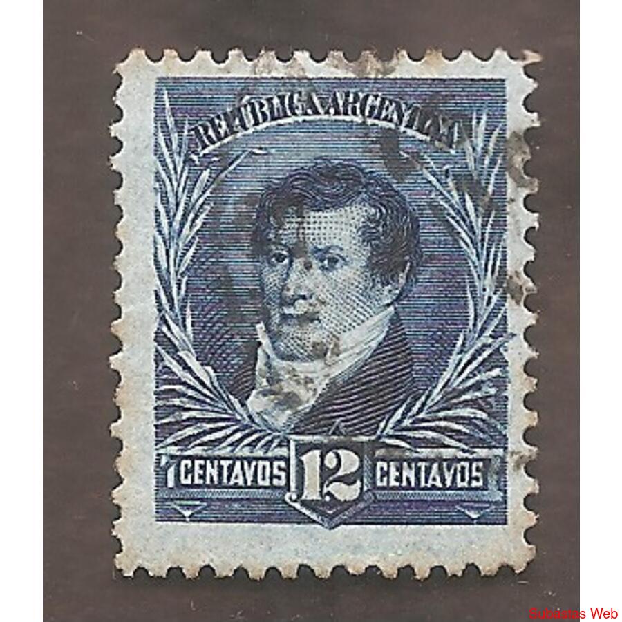 ARGENTINA 1892 TRES PROCERES: BELGRANO: FILIGRANA SOL GRANDE DENTADO 11,5x11,5 USADA, NROCAT: MT:100I