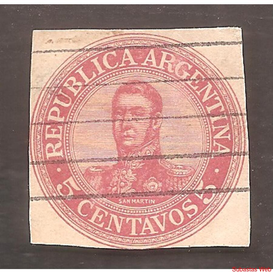 ARGENTINA 1908 MEDALLON DE SAN MARTIN DE 5 CENTAVOS, CORTADO DE CARTA POSTAL 35 (CAT. JALIL), EN TIPOGRAFIA, USADA