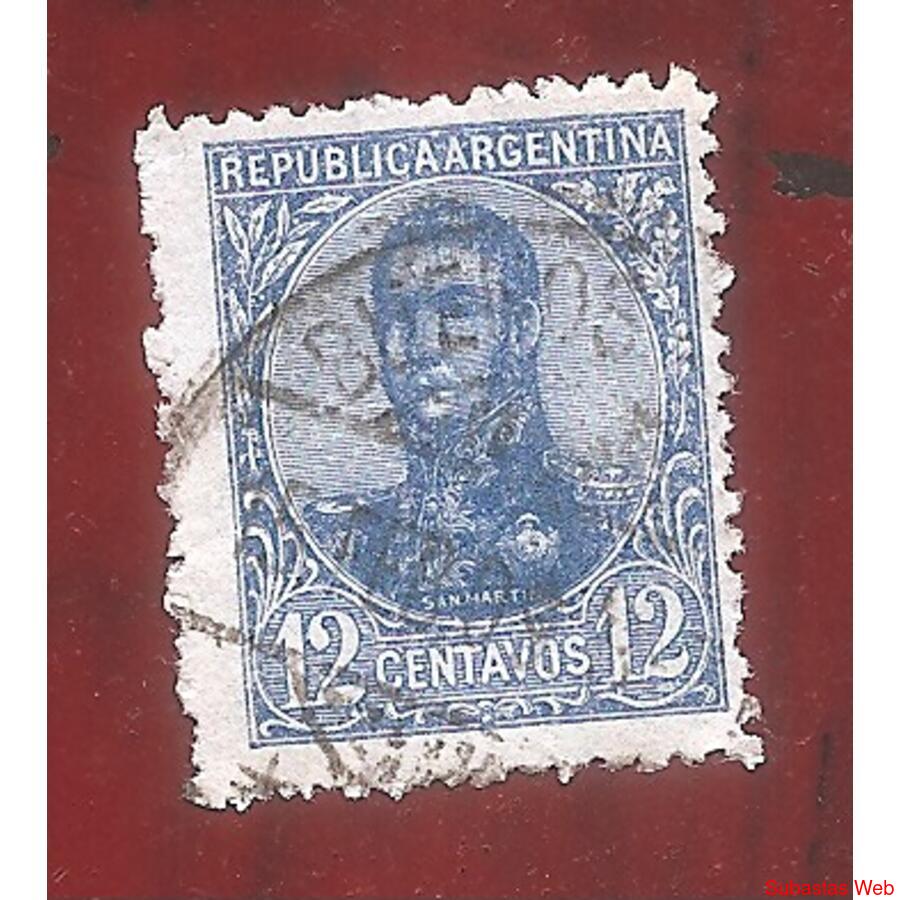 ARGENTINA 1908(141B) SAN MARTIN EN OVALO 13,5x13,5 USADA