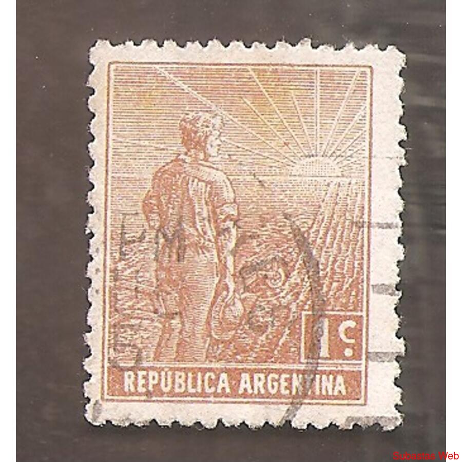 ARGENTINA 1911 LABRADOR, TIPOGRAFIA, FILIGRANA SOL CON RAYOS RECTOS, (SOL GRANDE) USADA, NROCAT: MT:168I GJ:329