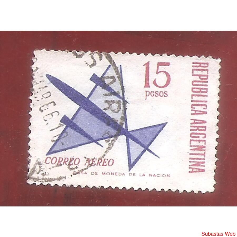 ARGENTINA 1965 CORREO AEREO ORDINARIO, DIBUJO DE UN AVION, PAPEL MATE, USADA, NROCAT: MT: A109 GJ:1238