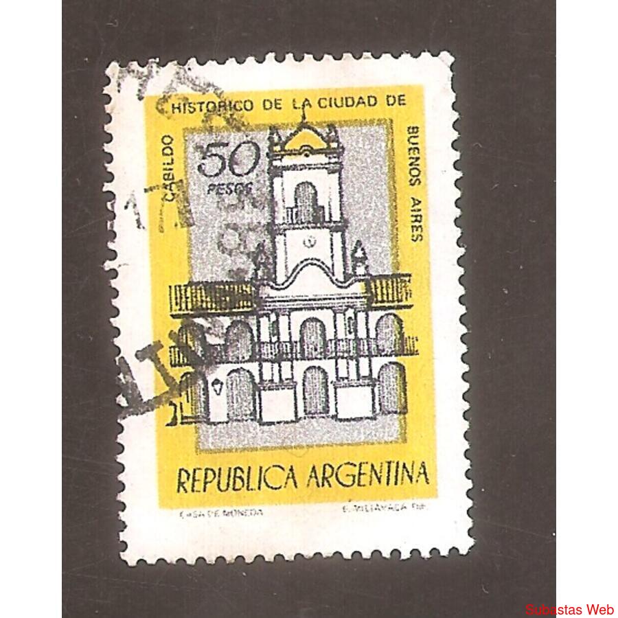 ARGENTINA 1977 CORREO ORDINARIO: HISTORIA Y TURISMO: CABILDO DE BUENOS AIRES MATE FLUORESCENTE, SIN FILIGRANA, USADA, NROCAT: MT:1083
