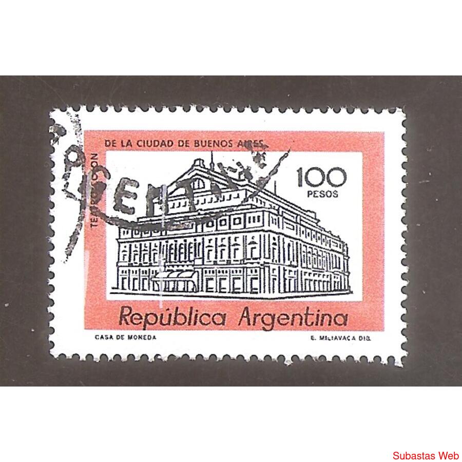 ARGENTINA 1979 CORREO ORDINARIO HISTORIA Y TURISMO: TEATRO COLON TIZADO FLUORESCENTE CON RAYAS FOSFORESCENTES, USADA, NROCAT: MT:1167a
