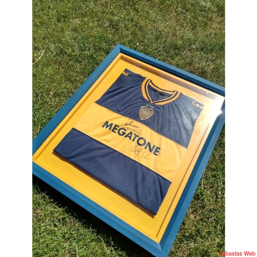 Camiseta de Boca versión 2007 firmada por Martin Palermo y Guillermo Barros Schelotto.