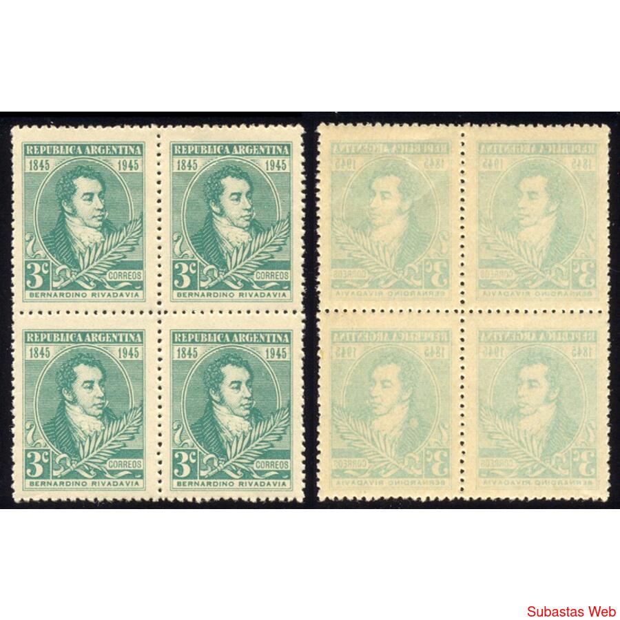 ARGENTINA. GJ 923 - BERNARDINO RIVADAVIA. ESPLENDIDO CUADRITO MINT CON VARIEDAD: