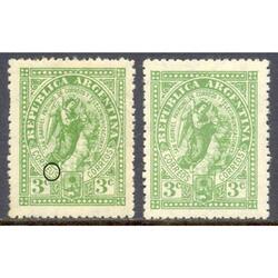 CUADRITO EN COLOR VERDE CLARO MUY SIMILAR AL ADOPTADO SOBRE PAPEL ORIGINAL CON FILIGRANA y GOMA - (2 SELLOS SON MINT + 2 CON SUAVE MARCA DE BISAGRA)