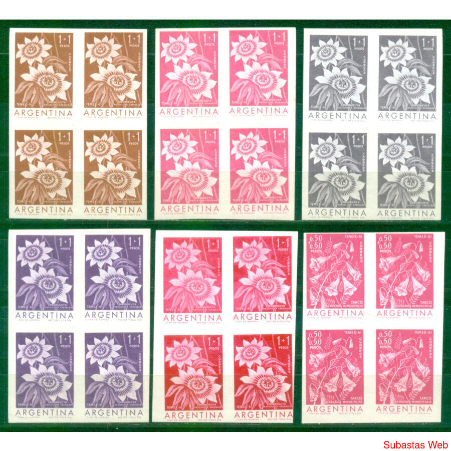 ARGENTINA. GJ1202. "Exposición Filatélica Temática Internacional" LOTE DE 6 ENSAYOS SIN DENTAR en CUADRITOS NUEVOS.