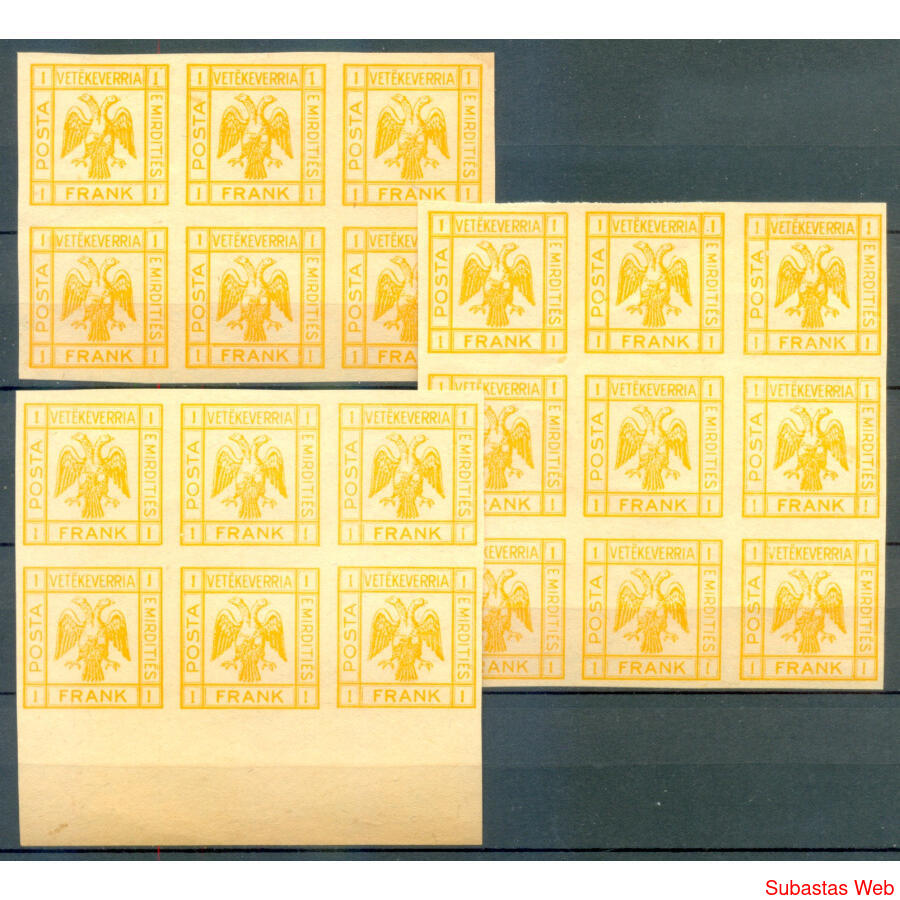ALBANIA 1921 ESTAMPILLA NO AUTORIZADA. 3 BLOQUES SIN DENTAR!