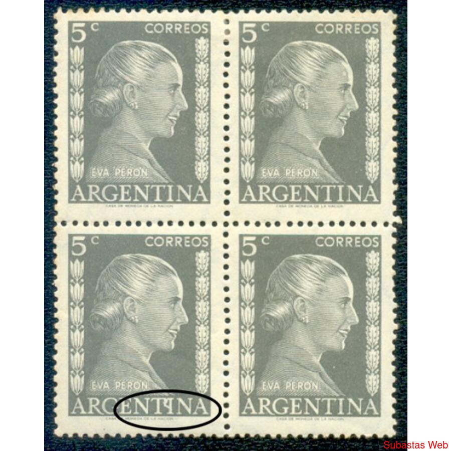ARGENTINA. GJ 1004b - EVA PERON - EVITA. ESPLENDIDO CUADRITO NUEVO R/B. CON VARIEDAD VARIEDAD CATALOGADA: