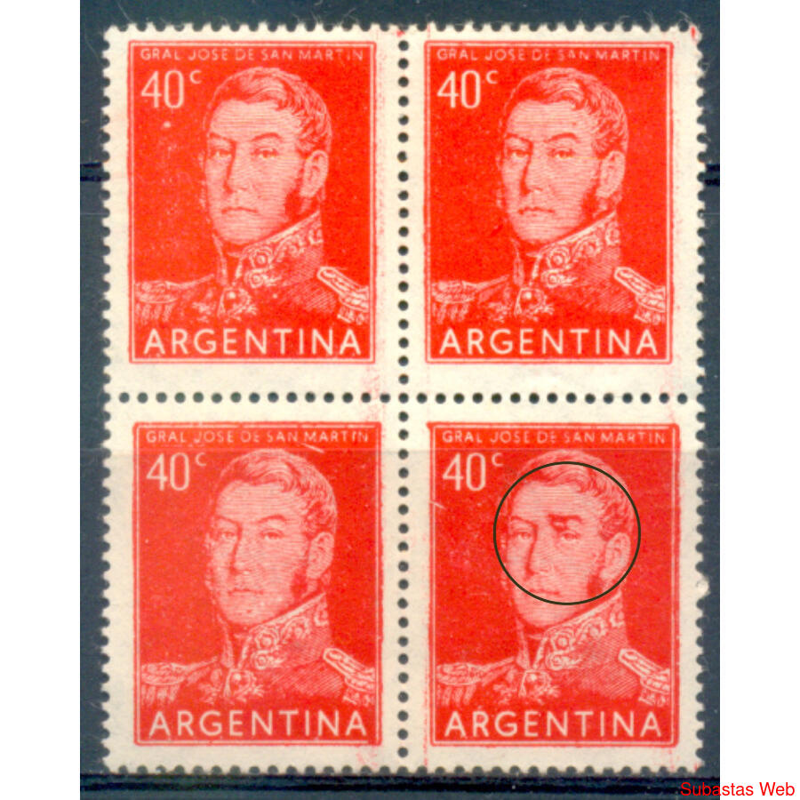 ARGENTINA. GJ1040 SAN MARTÍN PAPEL MATE NACIONAL TIPOGRAFIADO. ESPLENDIDO CUADRITO MINT CON UN