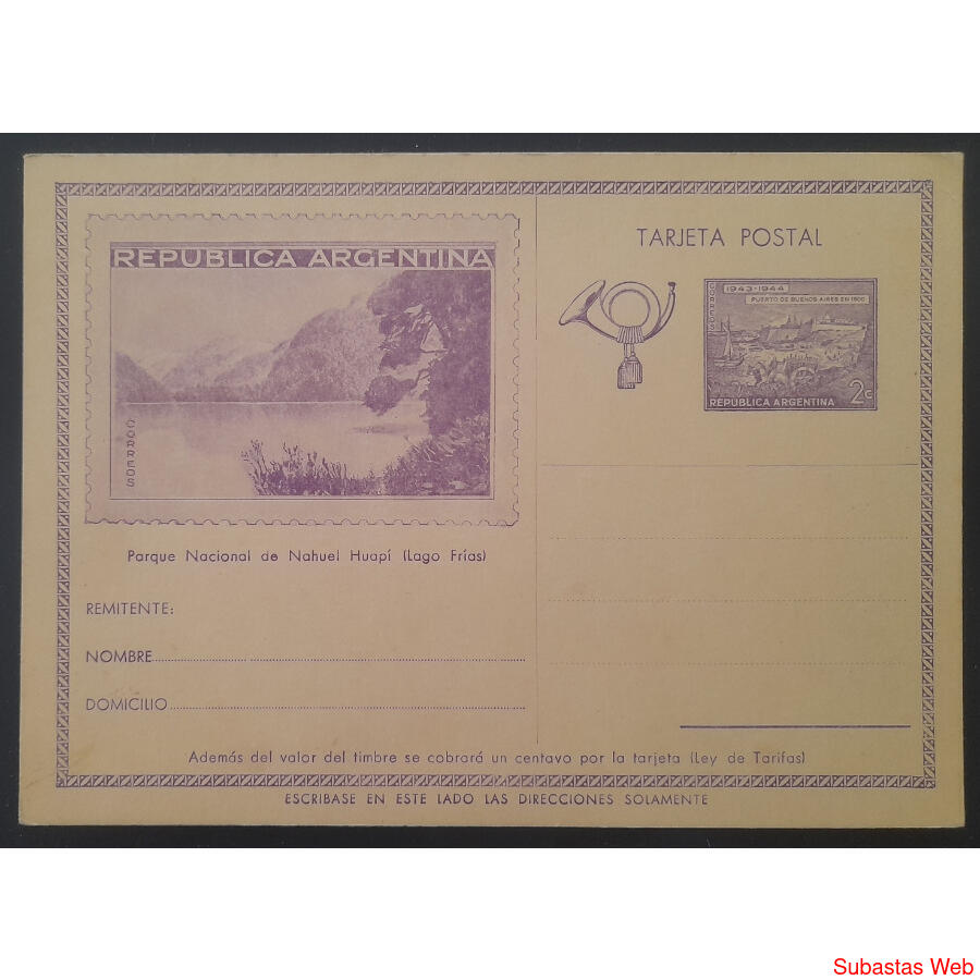 1943. ENTERO POSTAL - TARJETA POSTAL GJTAR 93 - 2c. LAGO FRIAS - PARQUES NACIONALES. NUEVA SIN CIRCULAR