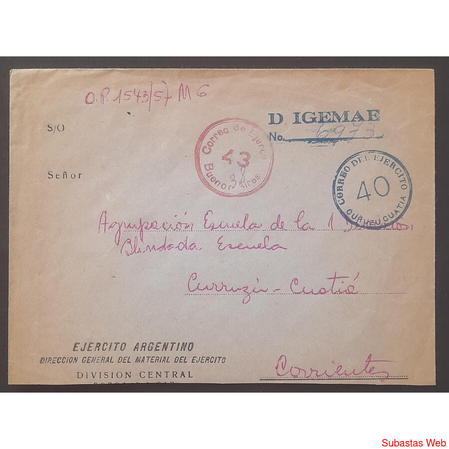 ESPLENDIDO SOBRE CIRCULADO DESDE BUENOS AIRES SOBRE CON GOMIGRAFO EN ROJO DISTRITO 43 - HACIA CURUZÚ CUATIÁ CON GOMIGRAFO DE RECEPCIÓN EN NEGRO DISTRITO 40
