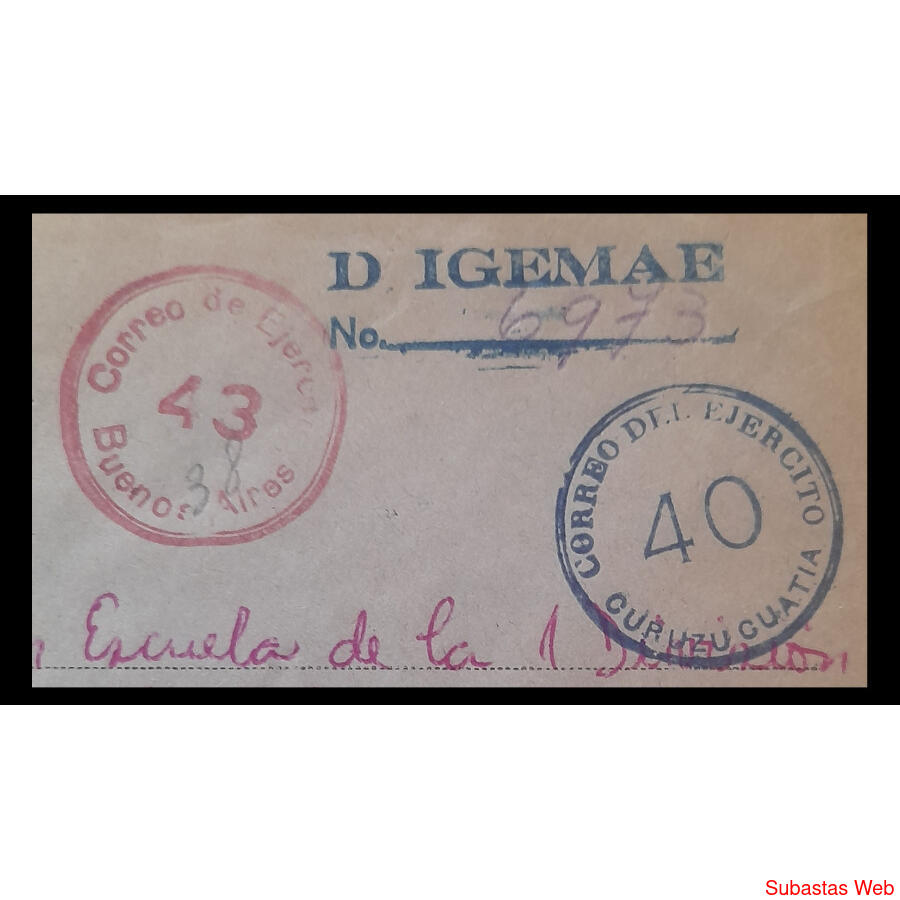 ESPECTACULAR SOBRE CORREO DEL EJERCITO A CURUZÚ CUATIÁ. RARO
