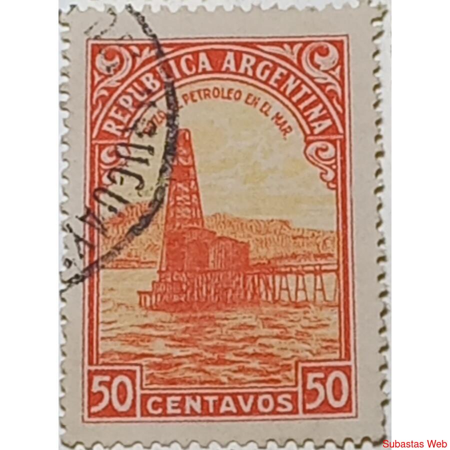 Sello 1945/1948. Riquezas Nacionales. Pozo de Petróleo en el Mar