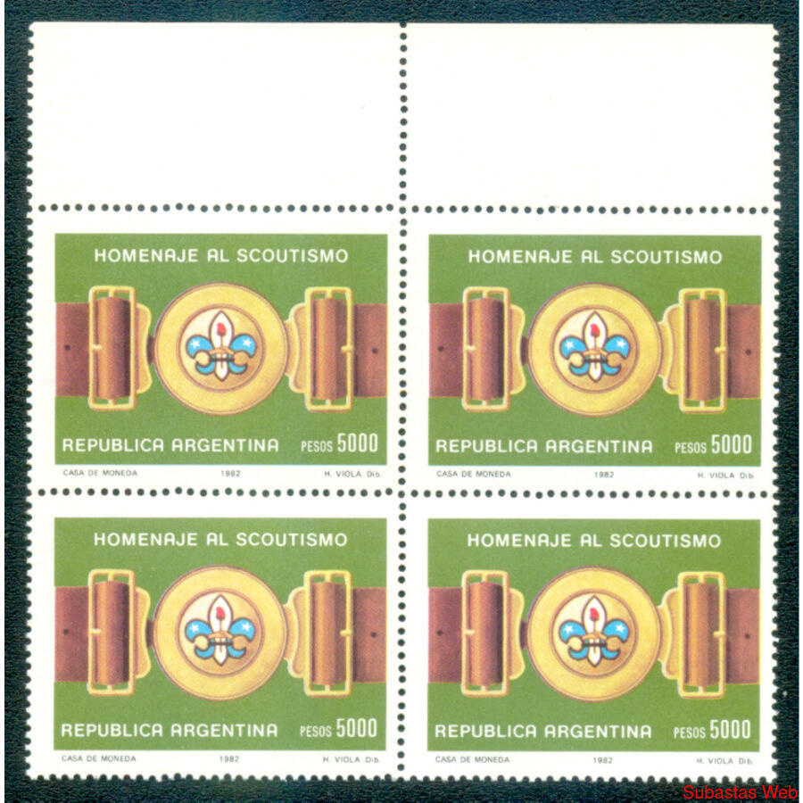ARGENTINA. GJ 2048 - "HOMENAJE AL SCOUTISMO". EN HERMOSO CUADRITO MINT CON BORDE DE HOJA SUPERIOR