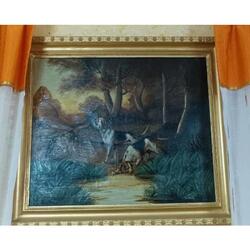 Así mismo podemos deducir que la pintura pertenece al artista pintor y litógrafo Ferdinand Víctor Eugene Delacroix, el marco fue tallado a mano en la época.