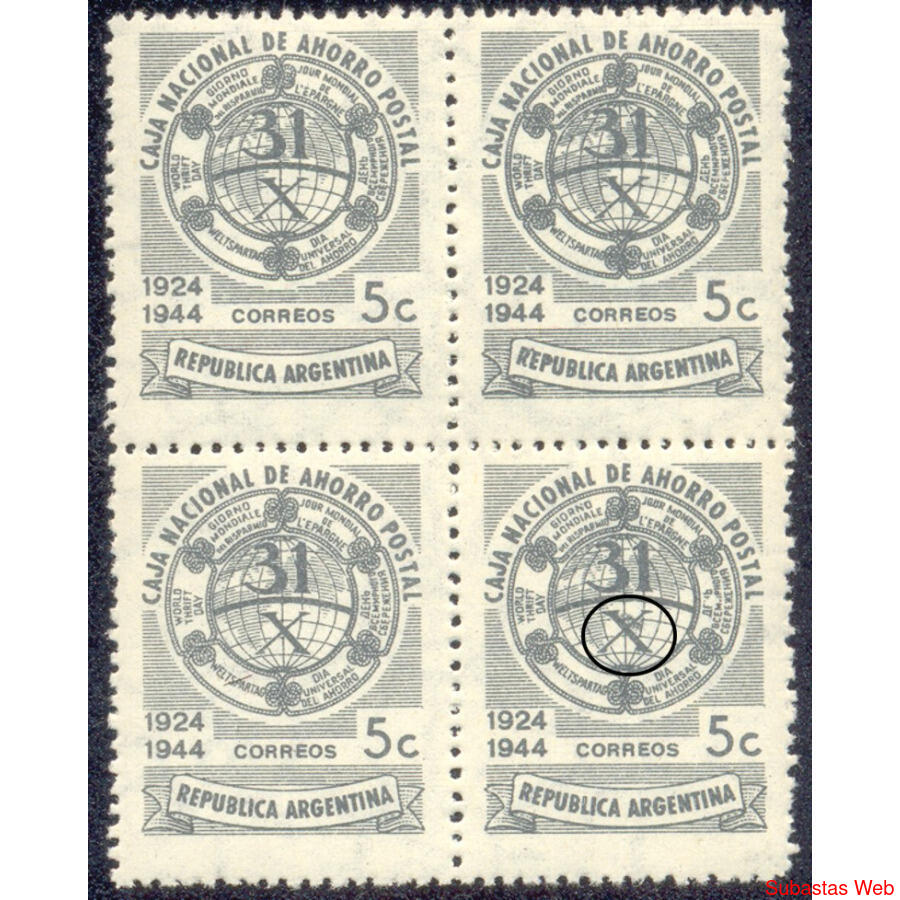 ARGENTINA. GJ 921 - DÍA UNIVERSAL DEL AHORRO. ESPLENDIDO CUADRITO MINT CON UN SELLO CON VARIEDAD REPETITIVA AUN NO CATALOGADA: