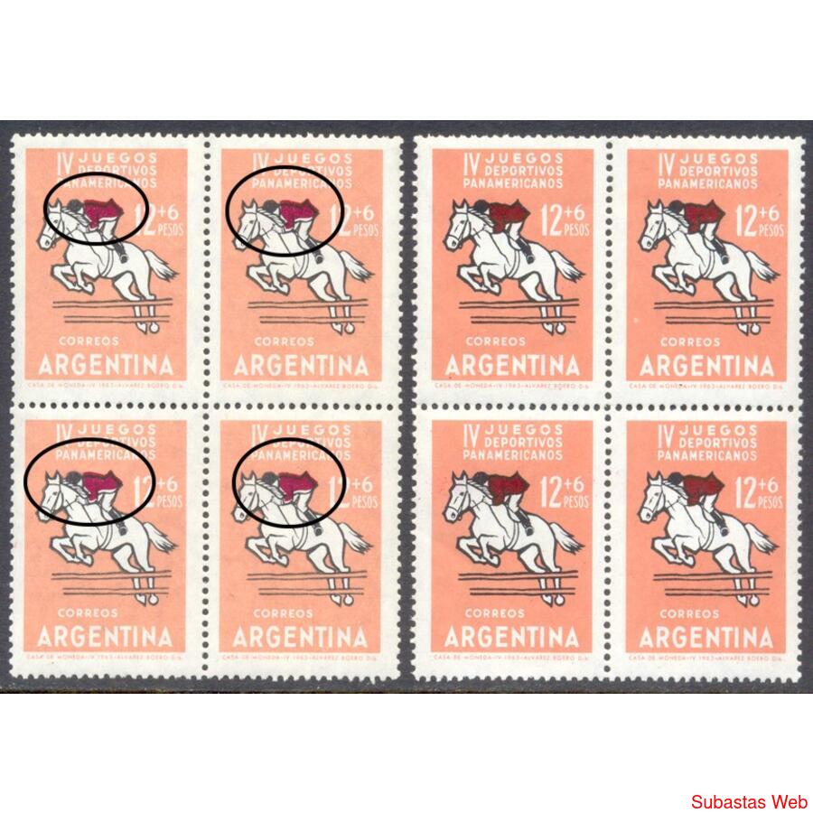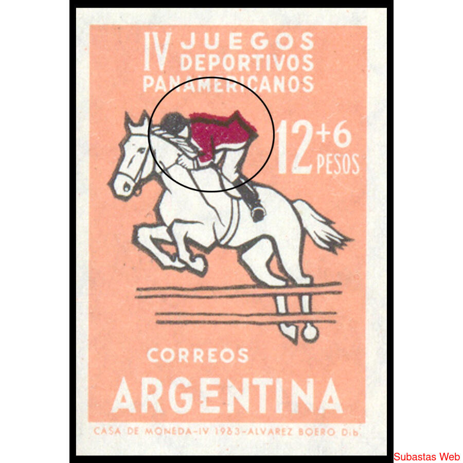 ARGENTINA. GJ1259c "JUEGOS DEPORTIVOS PANAMERICANOS - SALTO ECUESTRE" . ESPLENDIDO CUADRO MINT CON VARIEDAD CATALOGADA: